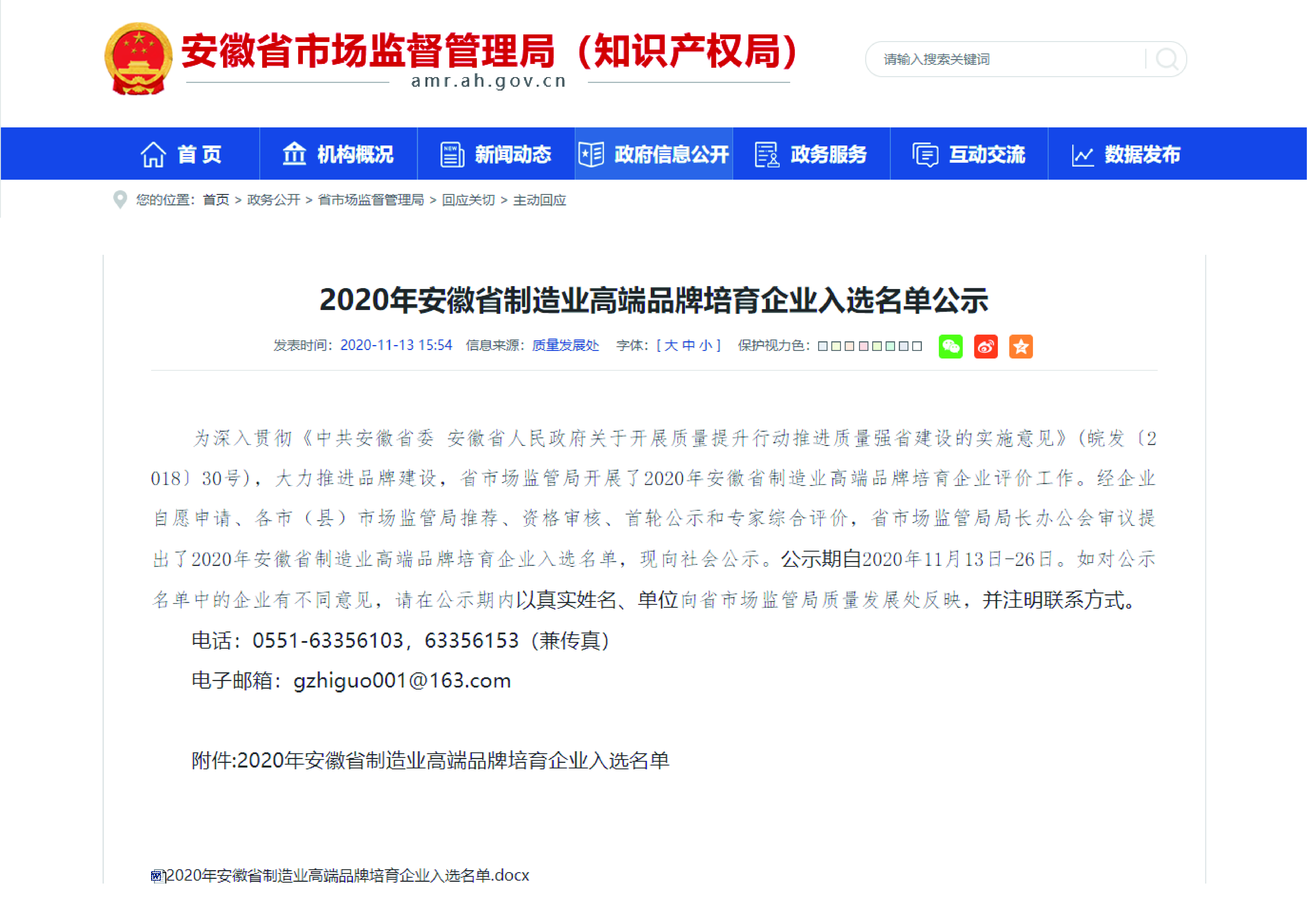 為深入貫徹《中共安徽省委 安徽省人民政府關于開展質量提升行動推進質量強省建設的實施意見》,大力推進品牌建設,增強安徽產品核心競爭力和品牌影響力,省市場監(jiān)管局開展了制造業(yè)高端品牌培育企業(yè)評選工作,這也是安徽省首次開展該項評選。