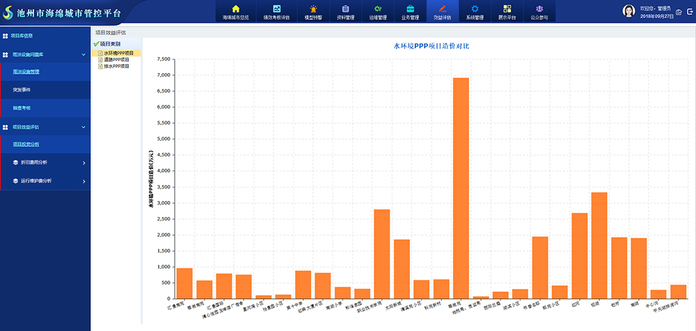 通過該功能實(shí)現(xiàn)對海綿城市建設(shè)的各類項(xiàng)目資產(chǎn)進(jìn)行信息化管理,規(guī)范管理內(nèi)容與管理流程,評估資產(chǎn)建設(shè)效益與成本費(fèi)用支出,為后續(xù)設(shè)計(jì)建設(shè)、設(shè)備選型提供參考評估依據(jù)。